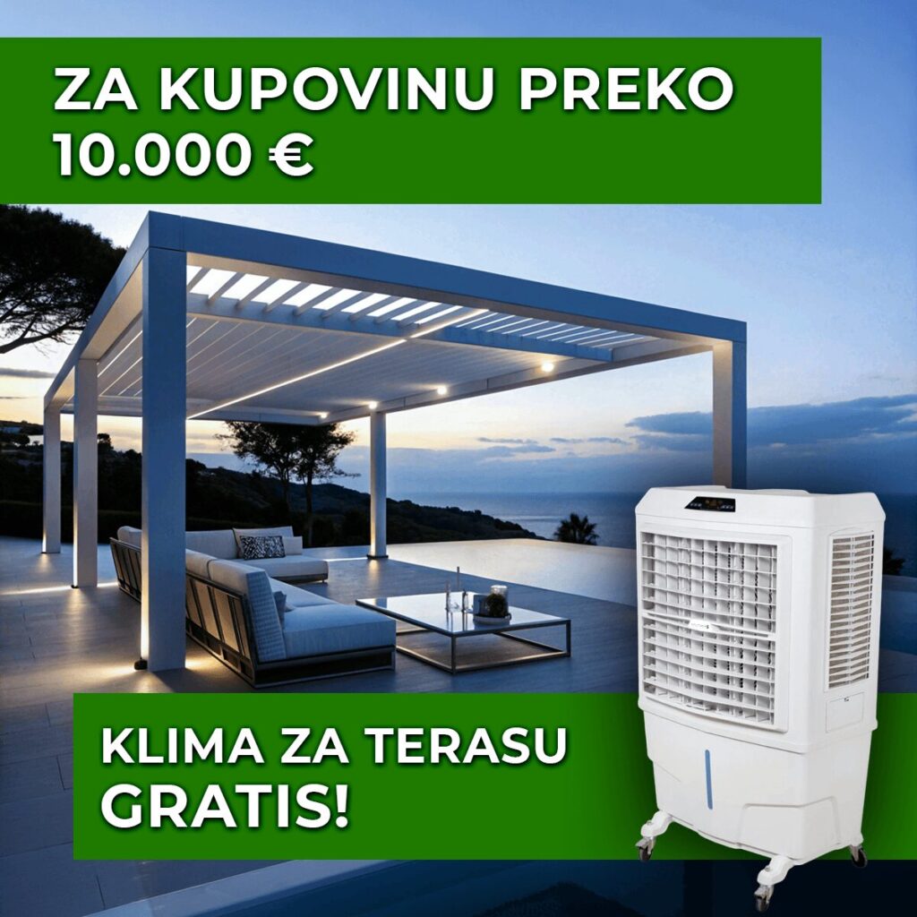 Naše bioklimatske pergole su apsolutni hit! Podesive lamele omogućuju savršenu zaštitu od sunca, kiše i snijega, dok moderan dizajn unosi dozu luksuza u svaki prostor. Dostupne su u različitim bojama i modelima, a dodatne opcije poput LED rasvjete i grijača čine ih idealnim za korištenje tijekom cijele godine.